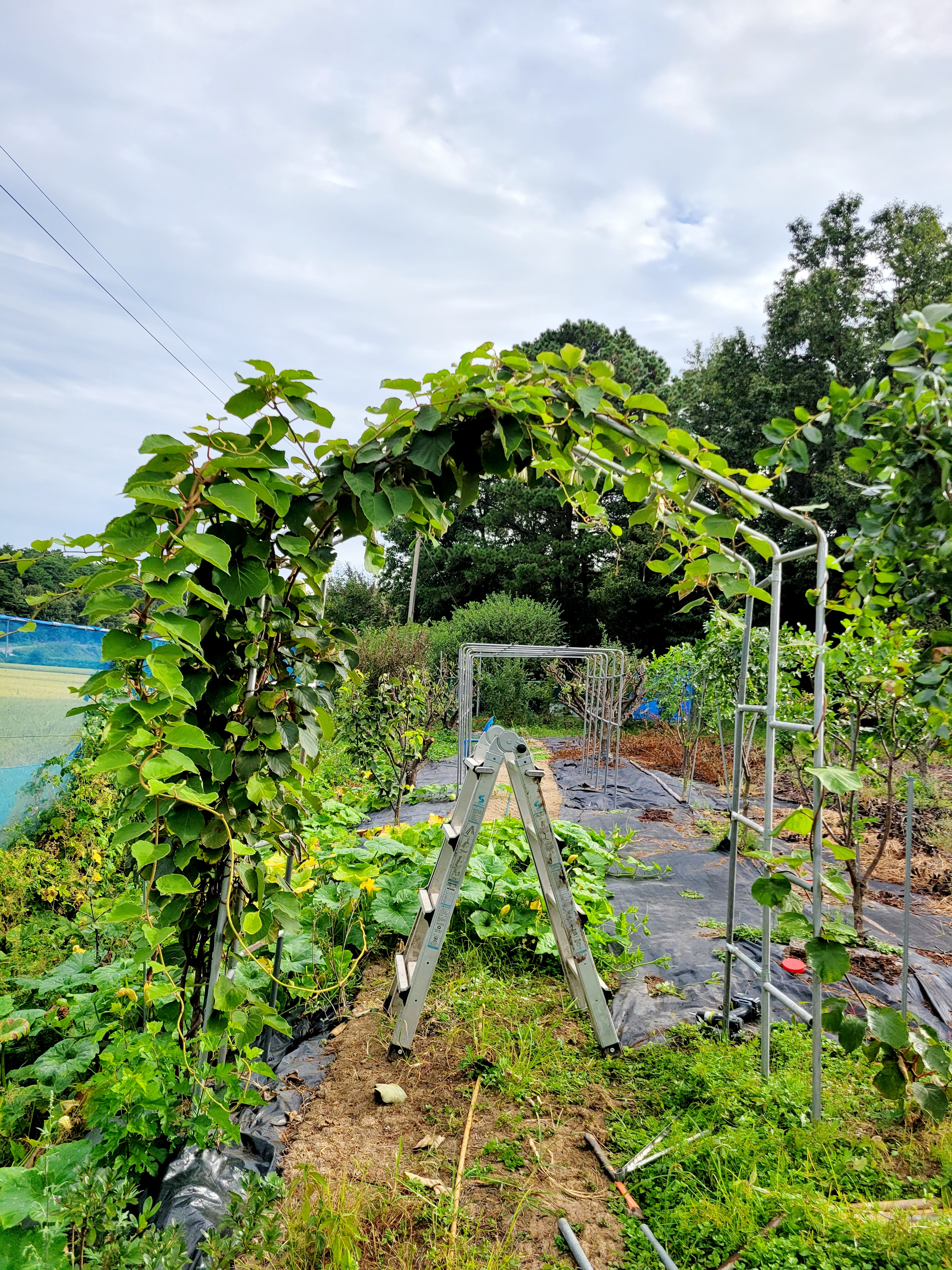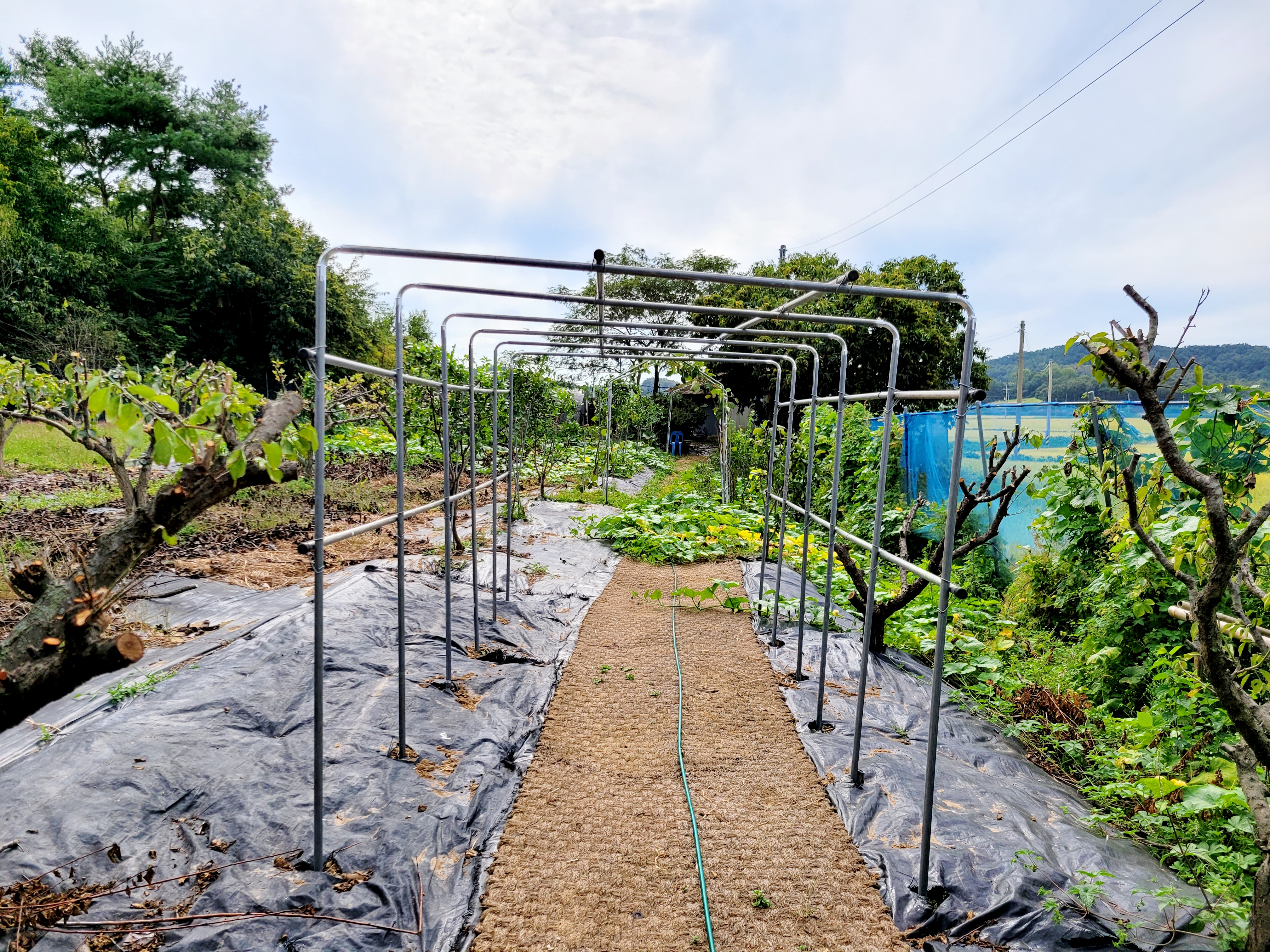 이번주는 키위나무 지지대도 하나 더 옆으로 획장 설치하는 것이다